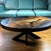 Această masă de cafea personalizată (coffee table) este o piesă unicat realizată din lemn spectaculos de nuc și rășină epoxidică, creată special pentru un client a cărui activitate profesională este legată de proiectarea drumurilor și podurilor.